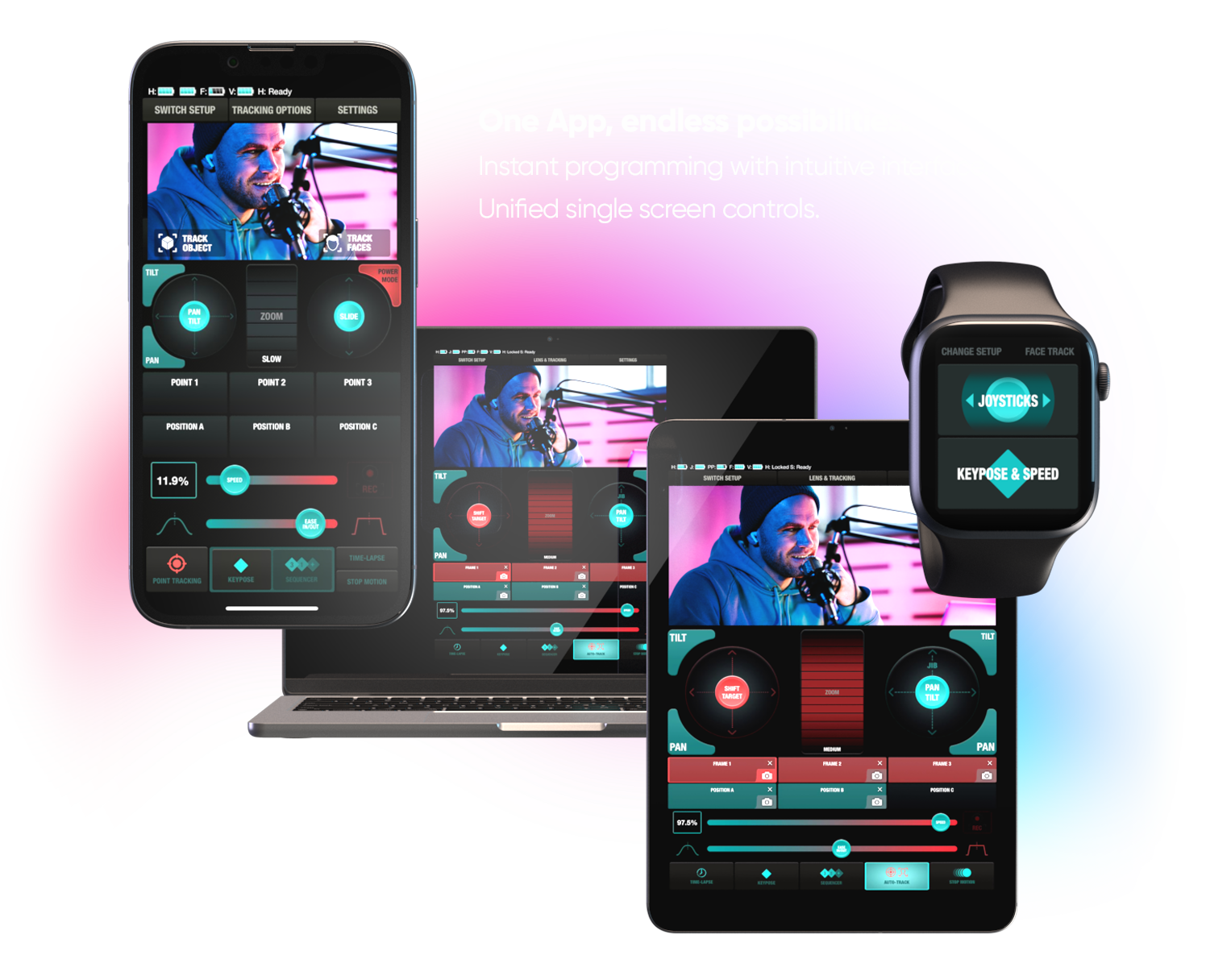 To control from a phone, tablet, watch or Mac (with M processor) use edelkrone App.