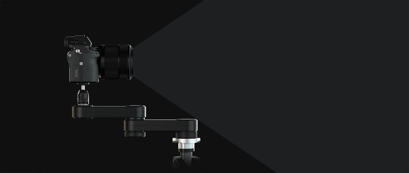 Railless portable slider that gives camera motion 4 times its size. No batteries or chargers required; a completely mechanical solution thanks to its unique double arm design.